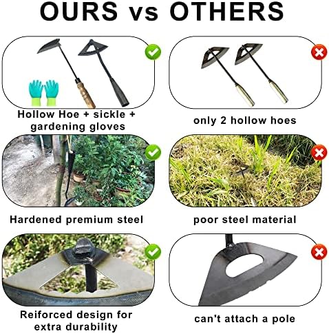 Great Value: Our Bundle Includes One All-steel Hollow Hoe, One Sickle Garden Tool, and a Pair of Gardening Gloves, Providing You With Everything You Need to Keep Your Garden Weed-free and Your Hands Protected.