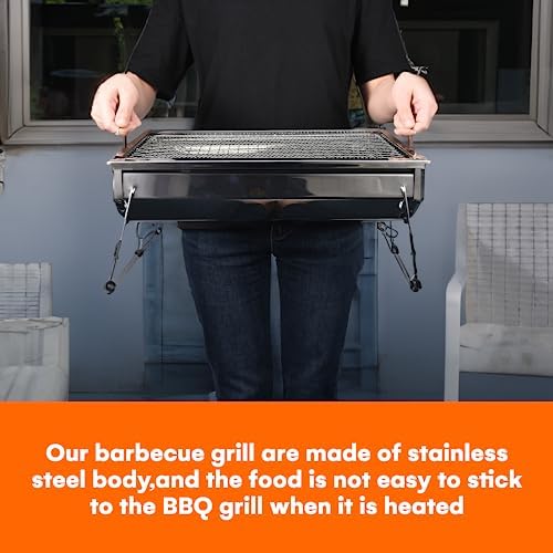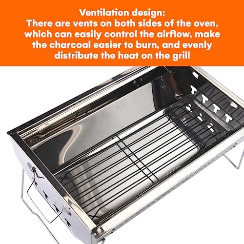 Zorestar Portable Folding Charcoal Grill, Premium Stainless Steel Outdoor BBQ for Camping, Picnics, Backyard Barbecues, Easy Setup, Storage, Ventilation Design, Sturdy & Compact for Travel
