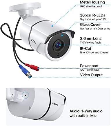 ZOSI 4PACK 1920TVL 1080P HD TVI Security Cameras 120ft Night Vision CCTV Cameras Home Security Day/Night Waterproof Camera for 720P,1080P,5MP,4K HD-TVI Analog DVR Systems