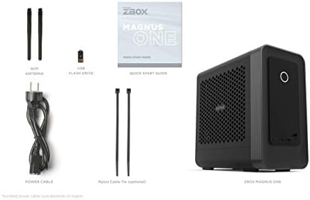 Empower everything in one incredibly powerful, versatile Mini PC. MAGNUS ONE boasts the ultimate performance in an all-new and compact design. It is the first Mini PC taking advantage of the ZOTAC GAMING GeForce RTX 3060 graphics card for high-fidelity ray-traced graphics and cutting-edge AI features with DLSS. Paired with a 10th Gen Intel Core i5 processor, upgradable memory and storage support, full-range connectivity options with Killer networking, MAGNUS ONE has the do-it-all capability to deliver the best experience for daily tasks, gaming, entertainment, content creation and business. FEATURES • Real-time Ray Tracing • Deep Learning Super Sampling (DLSS) • NVIDIA G-SYNC compatible • Microsoft DirectX 12 • Killer Wi-Fi 6 & Bluetooth 5 • Intel Optane memory ready • 500W 80+ Platinum • Gaming Ready / Creator Ready / 4K Ready / VR Ready SPECIFICATIONS • Intel Core i5-10400 processor (6-core 2.9 GHz, up to 4.3 GHz) • ZOTAC GAMING GeForce RTX 3060 12GB GDDR6 192-bit (Graphics card compatibility – Power: up to 220W, Width: dual-slot, Length: 230mm / 9.06in) HARD DRIVE & MEMORY • 512GB M.2 SSD • 1TB 2.5-inch SATA HDD • 16GB DDR4 SO-DIMM (one slot occupied, up to 64GB) • M.2 PCIe x4 SSD / Intel Optane memory slot (2242/2280/22110) FRONT PORTS • 3-in-1 card reader (SD/SDHC/SDXC) • 2 x USB 3.0 ports (1 Type-C) • Power button and power LED • Wi-Fi LED, Hard drive LED REAR PORTS • Power Connector • 2 x USB 3.0 ports • 4 x USB 3.1 Gen 2 ports • 1 x 10/100/1000 Ethernet • 1 x Killer 10/100/1000/2500 Ethernet • Dual Wi-Fi antenna connector DISPLAY OUTPUTS • 1 x HDMI 1.4 (up to 3840×2160@30Hz) (integrated) • 1 x HDMI 2.1 (up to 7680×4320@60Hz) • 3 x DisplayPort 1.4a (up to 7680×4320@60Hz) • Up to Quad Display Support AUDIO OUTPUTS • Onboard 8 Channel Digital Audio via HDMI • Analog Stereo In / Out SOFTWARE COMPATIBILITY • Microsoft Windows 10 Home (64-bit) pre-installed INSIDE THE BOX • ZOTAC ZBOX MAGNUS ONE ECM53060C with Windows 10 • Power Cord (bundled cable type dependent on region) • 2 x Wi-Fi Antenna • USB Flash Drive with O/S Recovery • Quick Install Guide • Nylon Cable Tie (optional) MINI PC DIMENSIONS • Length: 265.5mm (10.45in) • Width: 126mm (4.96in) • Height: 249mm (9.8in) BOX DIMENSIONS • Length: 440mm (17.32in) • Width: 327mm (12.87in) • Height: 205mm (8.07in)