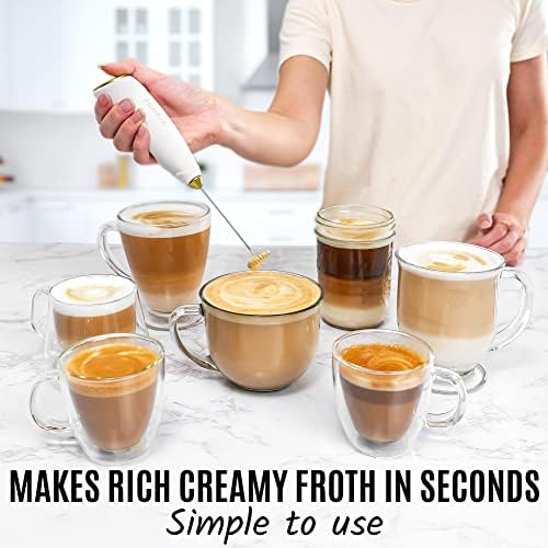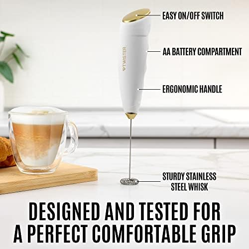 Zulay Kitchen Powerful Milk Frother Handheld – Easy-to-Grip Hand Mixer Electric – Twister-Design Mini Mixer for Powder Drinks – Coffee Frother Handheld & Mixer Electric Handheld – (White/Gold)